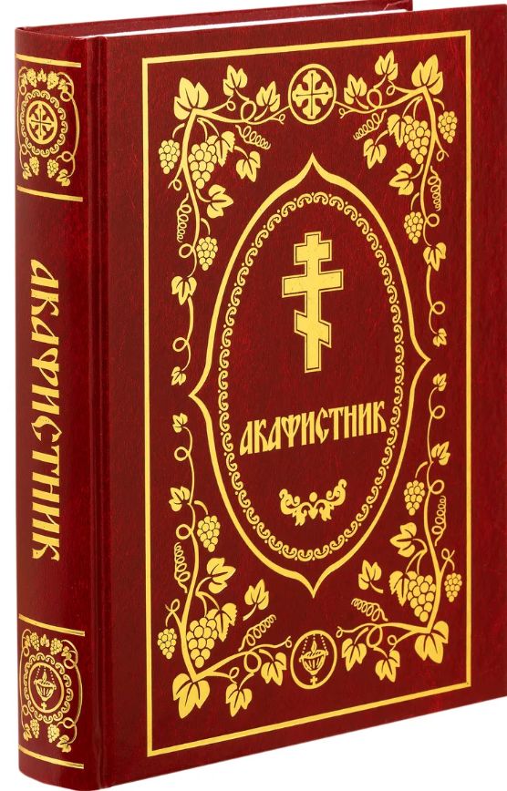 Полный акафистник в аналойном формате. Шикарное подарочное издание большого формата в твердом переплете с тиснением золотом.