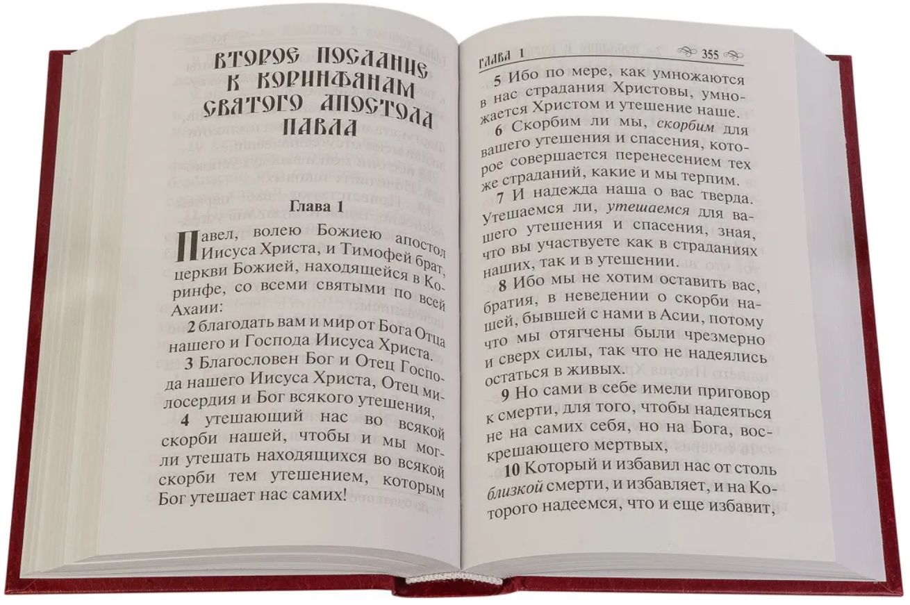 Апостол на русском языке в Синодальном переводе. Издание удобного малого формата. Текст отпечатан стандартным шрифтом. Использован твердый переплет с тиснением золотой фольгой, качественная офсетная бумага.