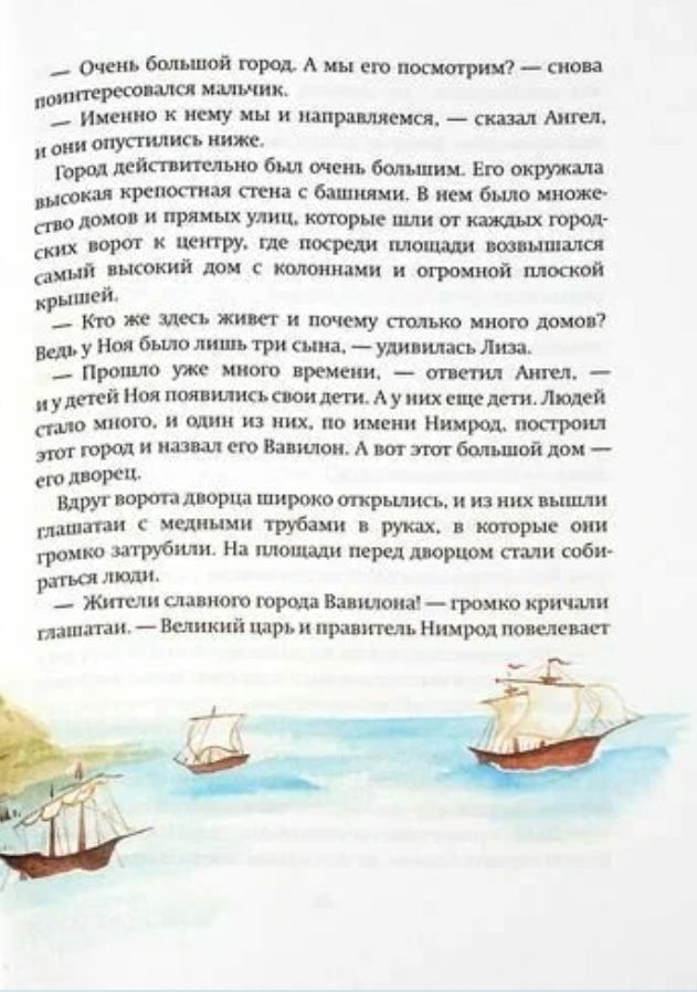 Мы приглашаем и маленьких читателей, и читателей постарше в захватывающее путешествие через тысячелетия. В страны и города, многих из которых сегодня не найти на карте. Вместе с детьми, Лизой и ее младшим братом Митей, а также их чудесным провожатым Ангелом, они станут очевидцами, а порой и участниками событий из Священной истории. От сотворения мира до Воскресения Христа и подвигов Его учеников, святых апостолов.