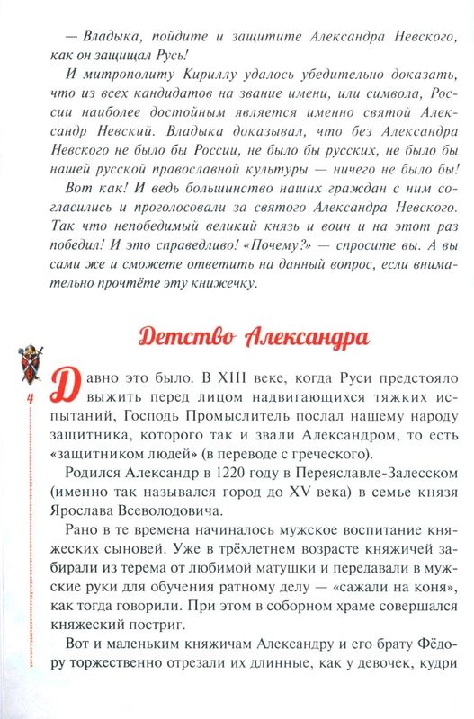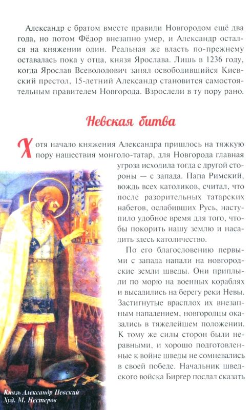 Повествование о русском богатыре, защитнике Руси, герое-освободителе Александре Невском раскрывает православному читателю новые аспекты жизни благоверного князя: упование на помощь Божию, мужество в сочетании с терпением и кротостью, благочестивую веру и мудрость. Схимонахом Алексием отошёл ко Господу народный заступник князь Александр и молит Господа о почитающих его память. Акафист святому дополняет житийную повесть.