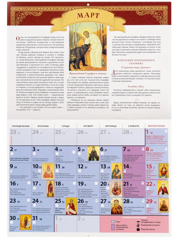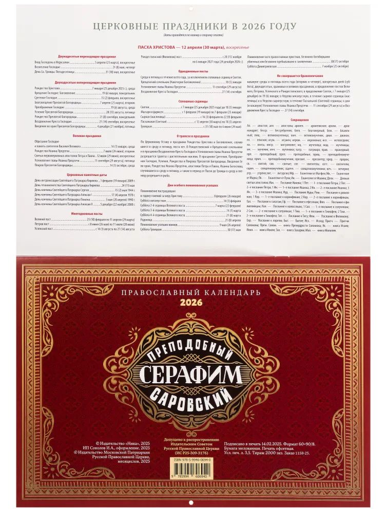 Календарь православный на 2026 год "Преподобный Серафим Саровский"