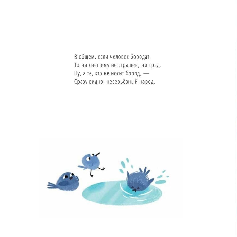 Книжка «Бородатые сказки» – остроумный, фантастический, сказочный и очень смешной гимн бороде. Автор нафантазировал и зарифмовал множество шуточных историй о пользе бороды, которые не только развеселят маленького читателя, но и разбудят его воображение. Прочитав эту книжку с ребёнком, можно предложить ему самому напридумывать ещё много-много небылиц. И нарисовать к ним картинки, как настоящий художник. Или сочинить гимн какому-то другому предмету: например, любимой игрушке или хорошей погоде за окном. Кстати, попутно можно обсудить, что такое «гимн» и «ода», кому их обычно посвящают, и насколько серьёзный гимн получился у Андрея Усачёва.
