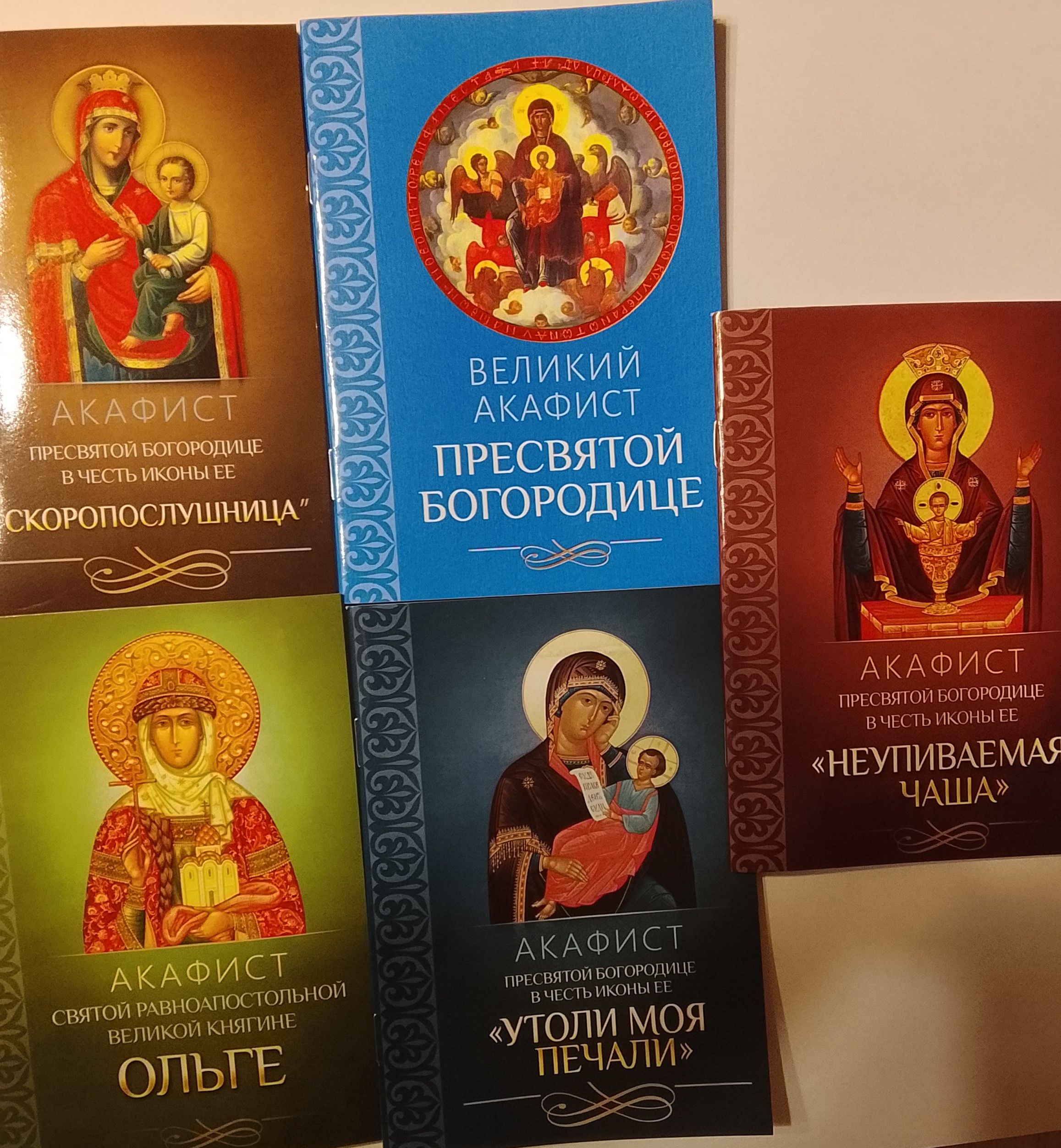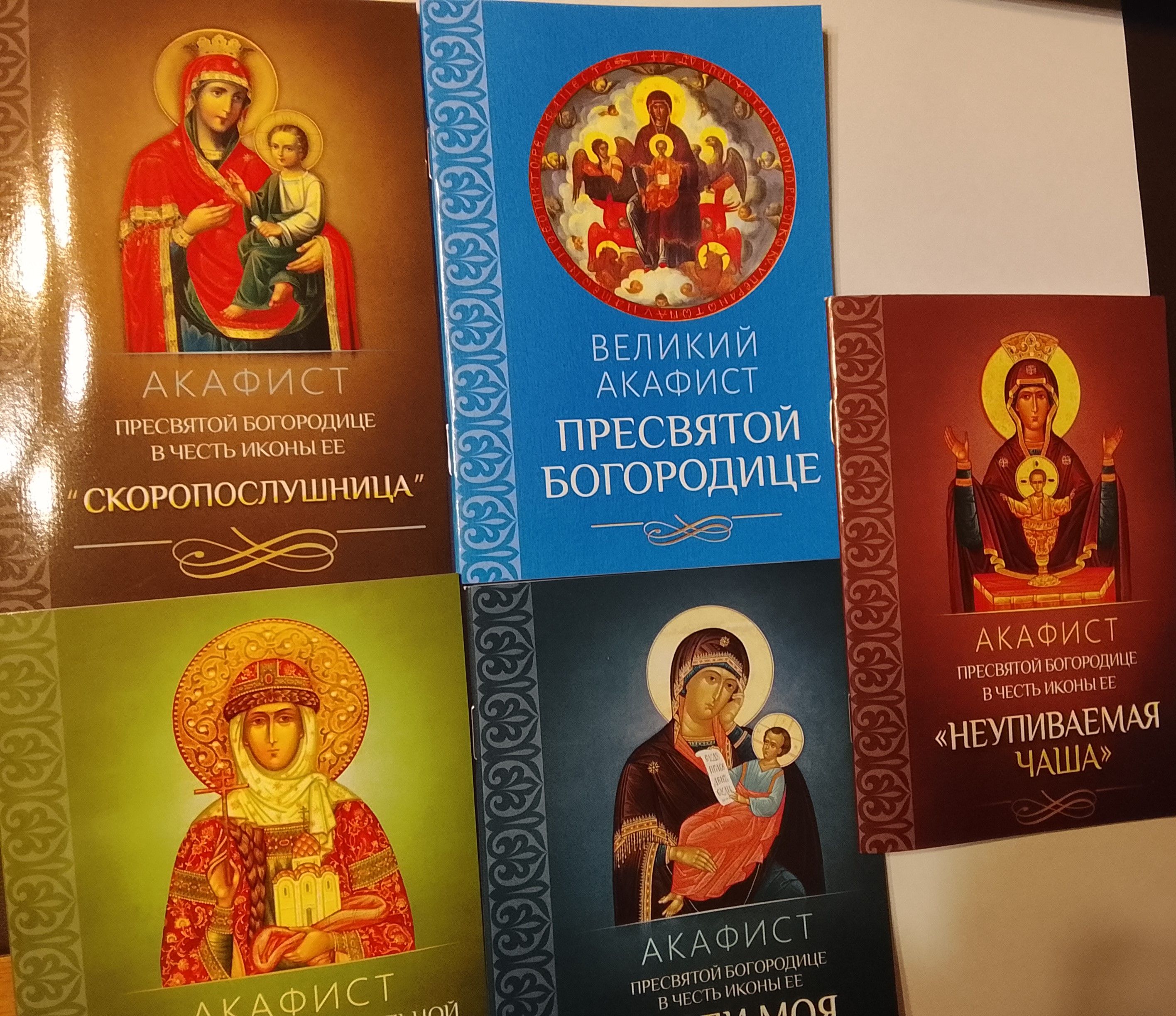 1. Акафист Пресвятой Богородице в честь иконы Ее «Утоли моя печали». Перед иконой Пресвятой Богородицы «Утоли моя печали» молятся об избавлении от телесных болезней, от греховных страстей, обуревающих сердце человека, об избавлении от скорбей и печали, при расслаблении, параличе, отчаянии. 32 стр.