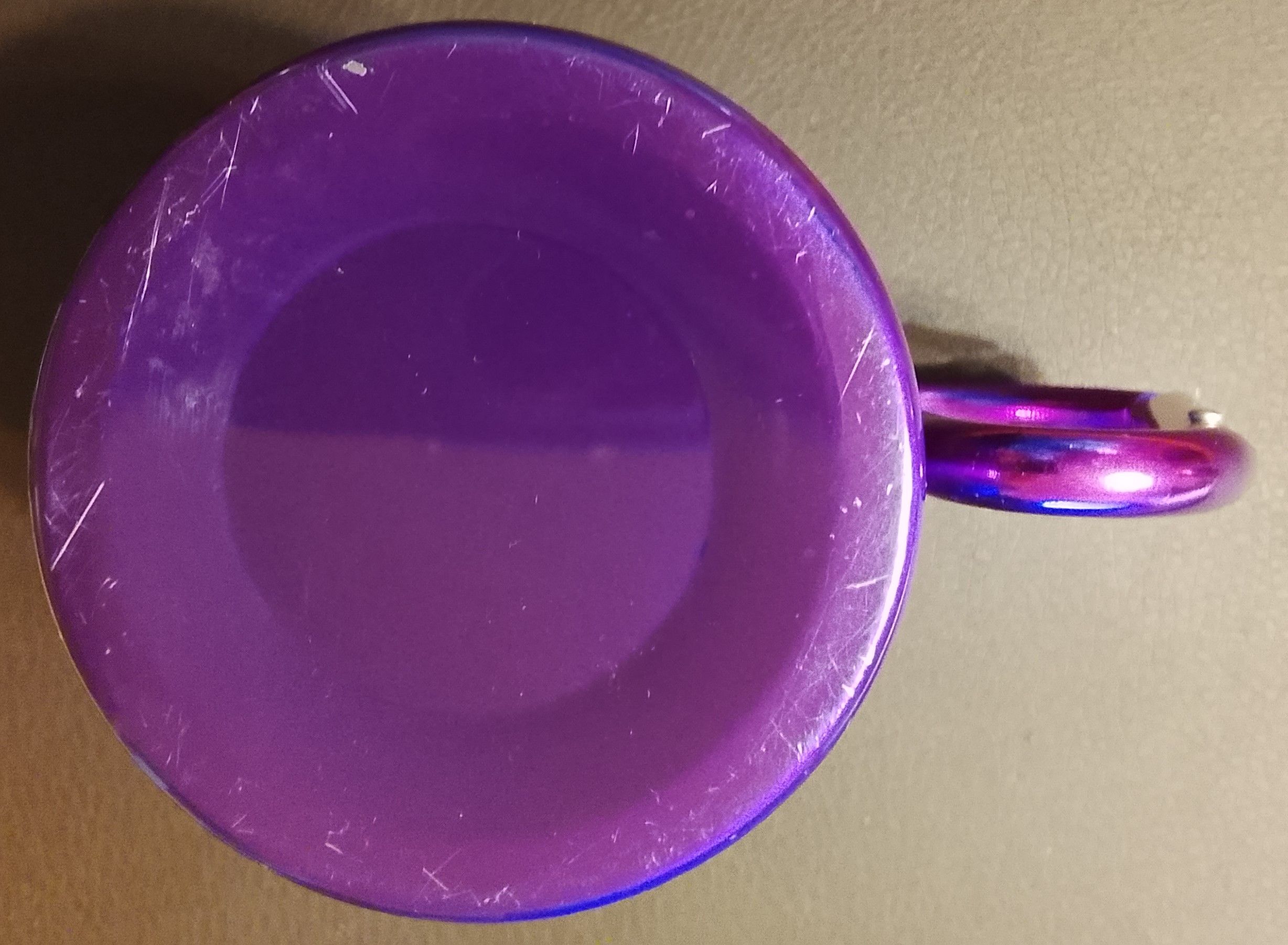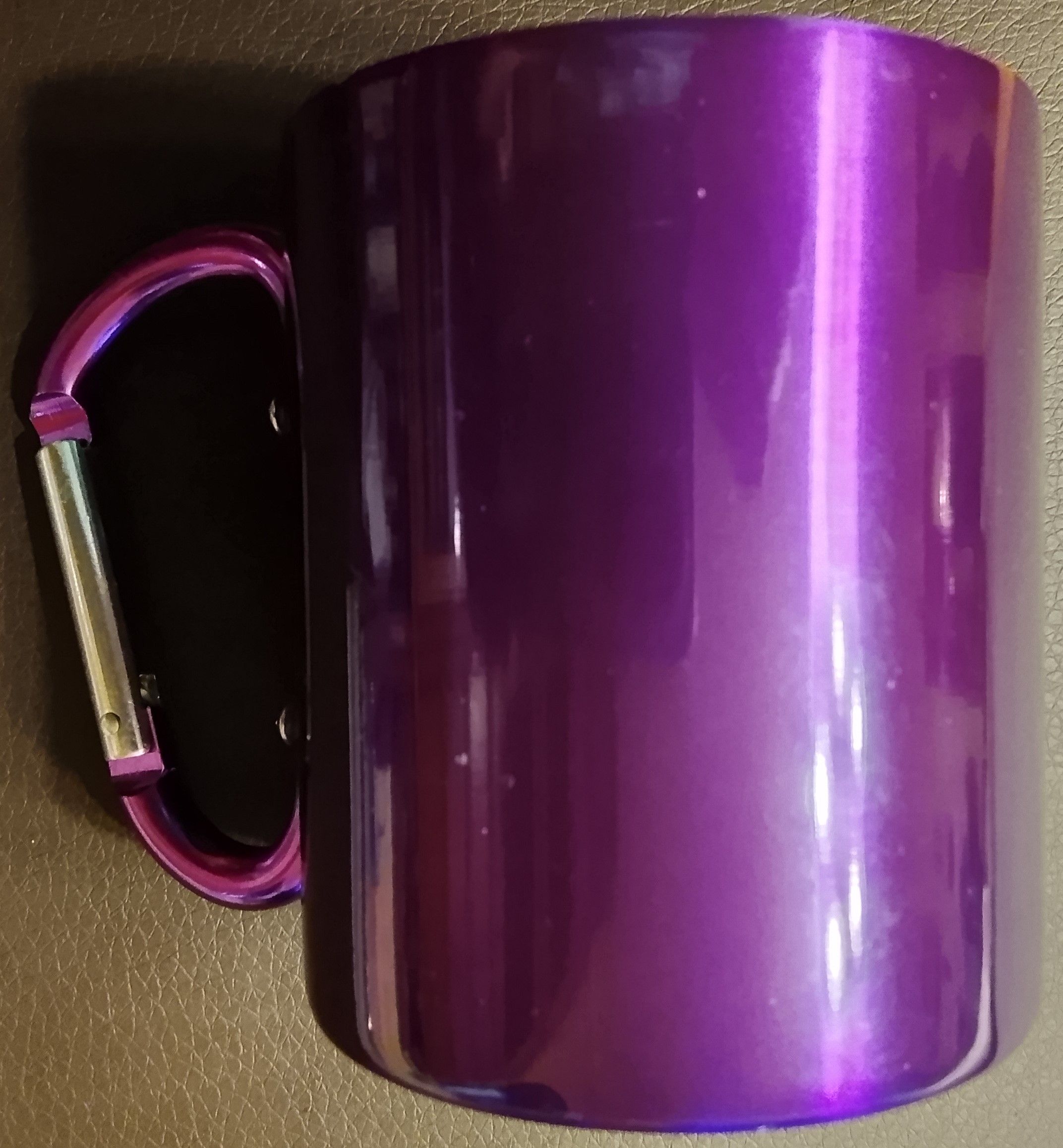Диаметр 68 смм Высота 78 мм. Металл. Ручка кружки - с карабином.