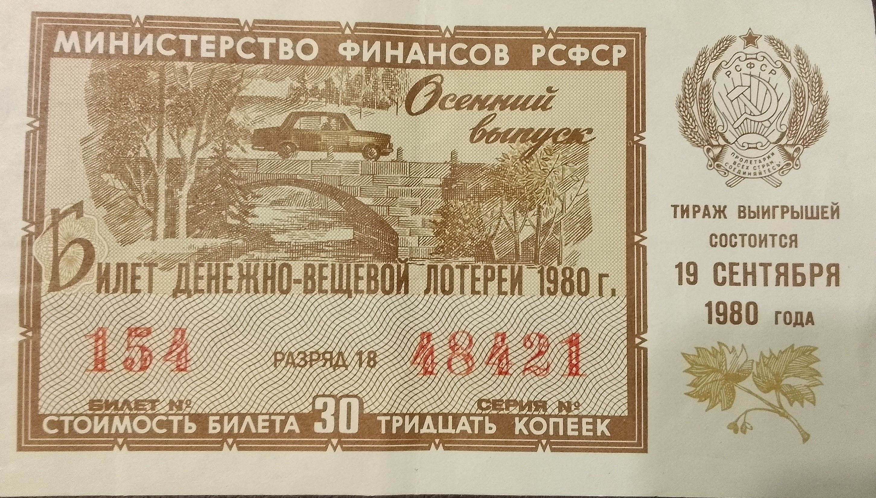- Редкий экземпляр с сохранившейся типографской печатью и характерным дизайном советских лотерейных билетов