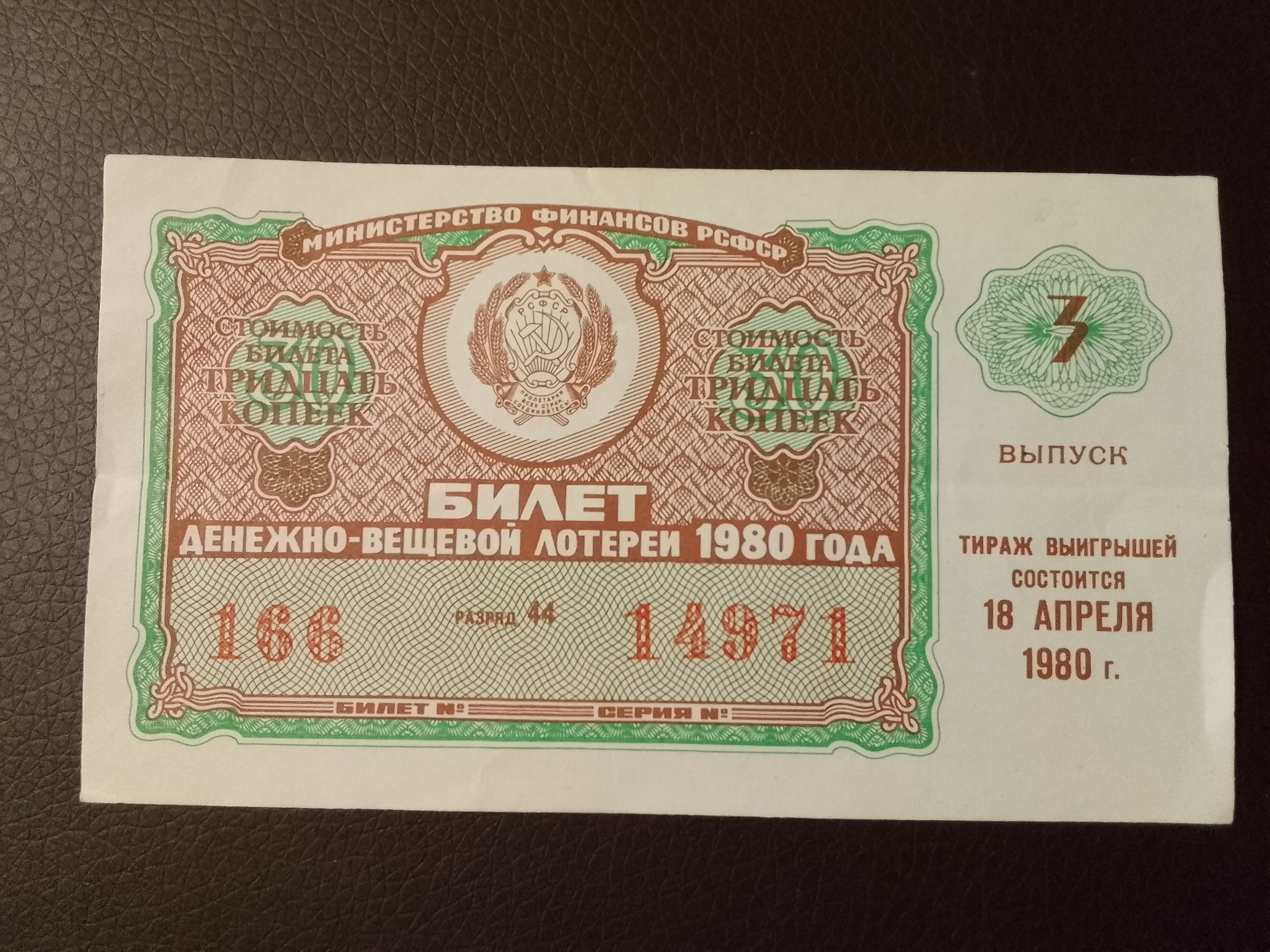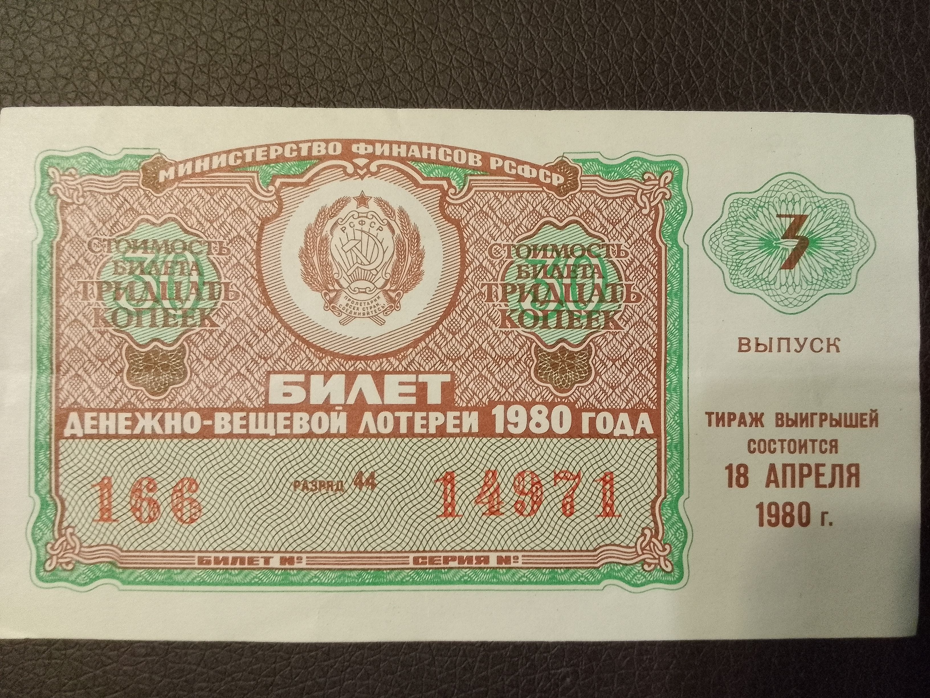 - Редкий экземпляр с сохранившейся типографской печатью и характерным дизайном советских лотерейных билетов