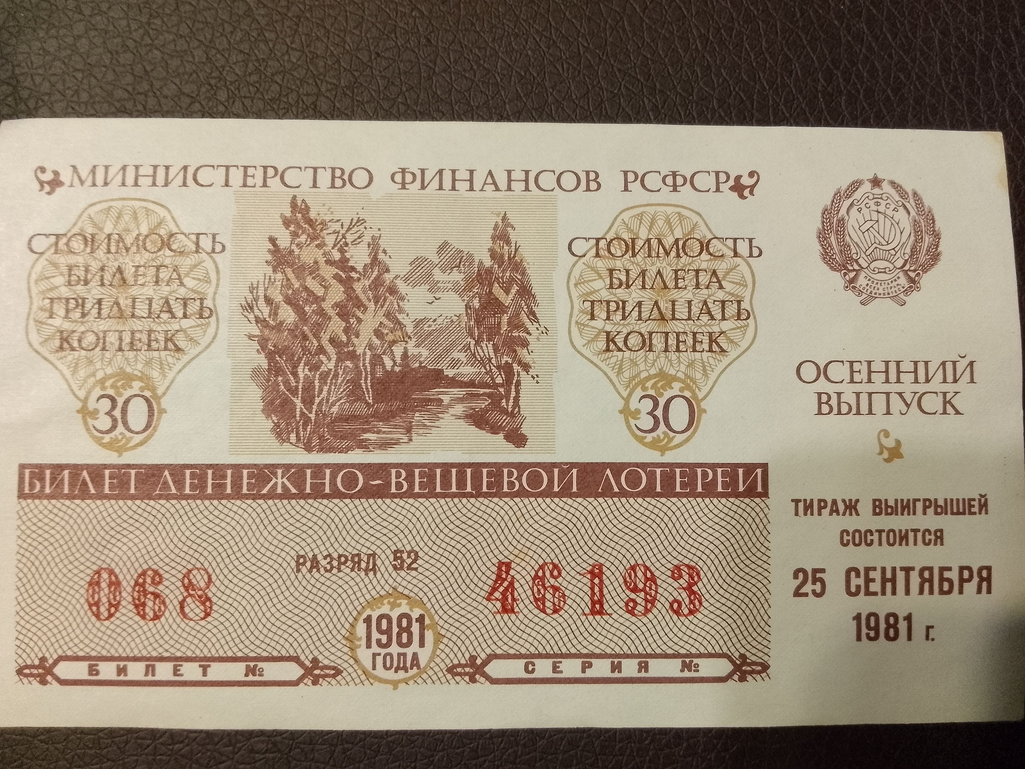 Лотерейный билет денежно-вещевой лотереи СССР 1981 год 25 сентября Оссенний выпуск