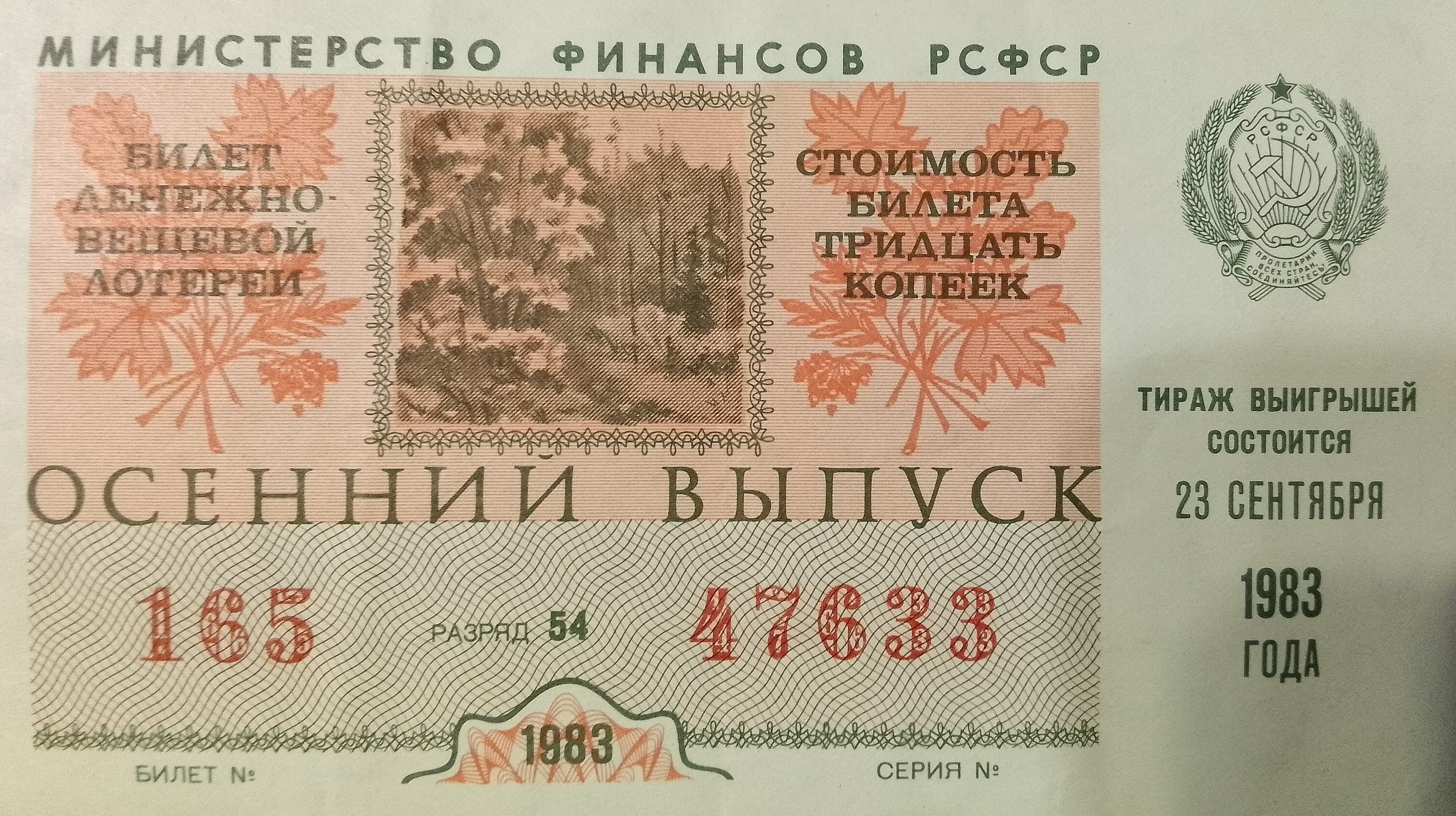 - Редкий экземпляр с сохранившейся типографской печатью и характерным дизайном советских лотерейных билетов