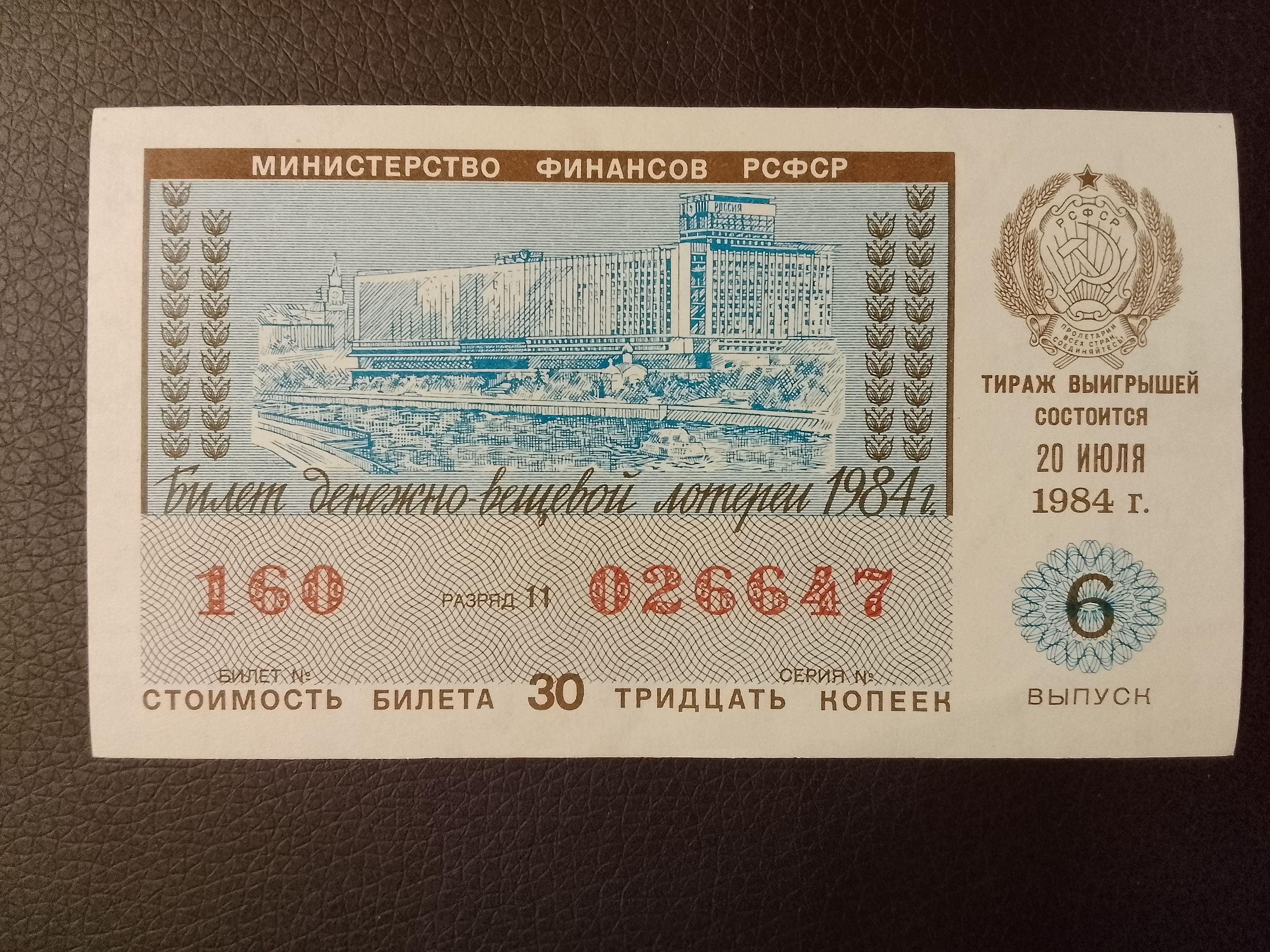- Редкий экземпляр с сохранившейся типографской печатью и характерным дизайном советских лотерейных билетов
