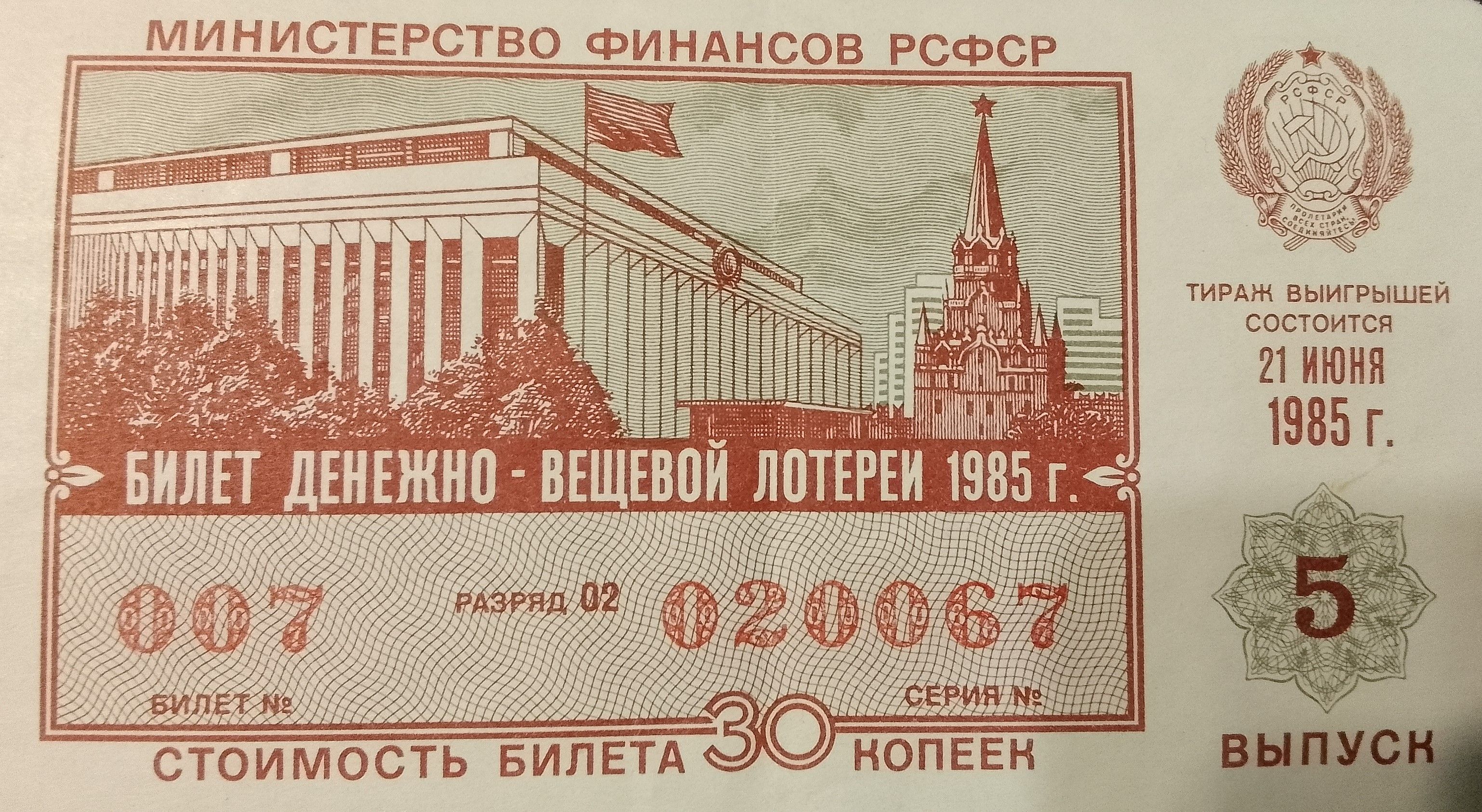 - Редкий экземпляр с сохранившейся типографской печатью и характерным дизайном советских лотерейных билетов