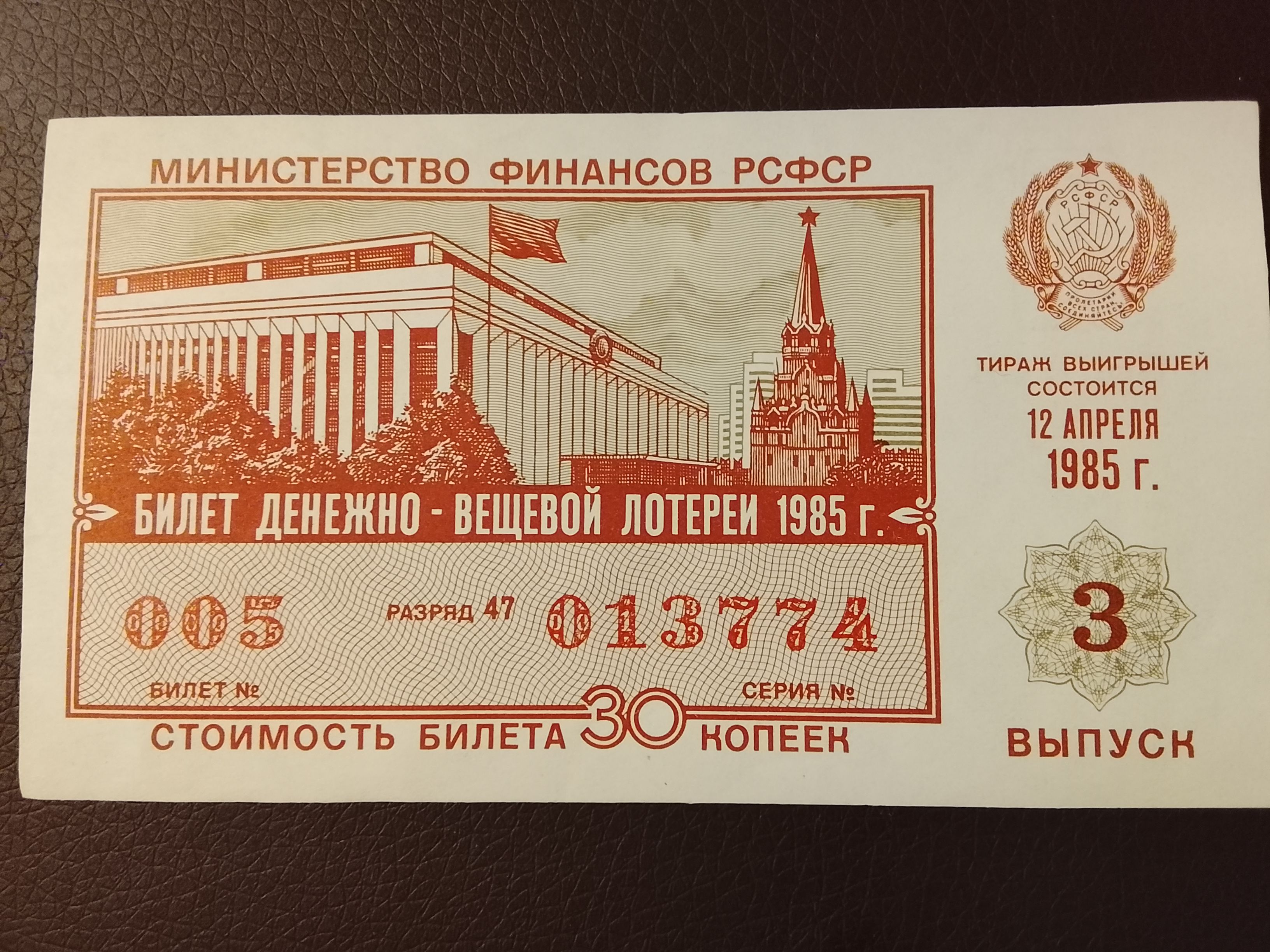 Лотерейный билет денежно-вещевой лотереи СССР 1985 года — уникальный артефакт эпохи, сочетающий историческую ценность и художественную привлекательность. Издан в рамках третьего выпуска, он представляет собой документ, свидетельствующий о культурных и экономических особенностях Советского Союза. Чёткая печать и характерный дизайн придают ему аутентичности, сохраняя дух времени.
