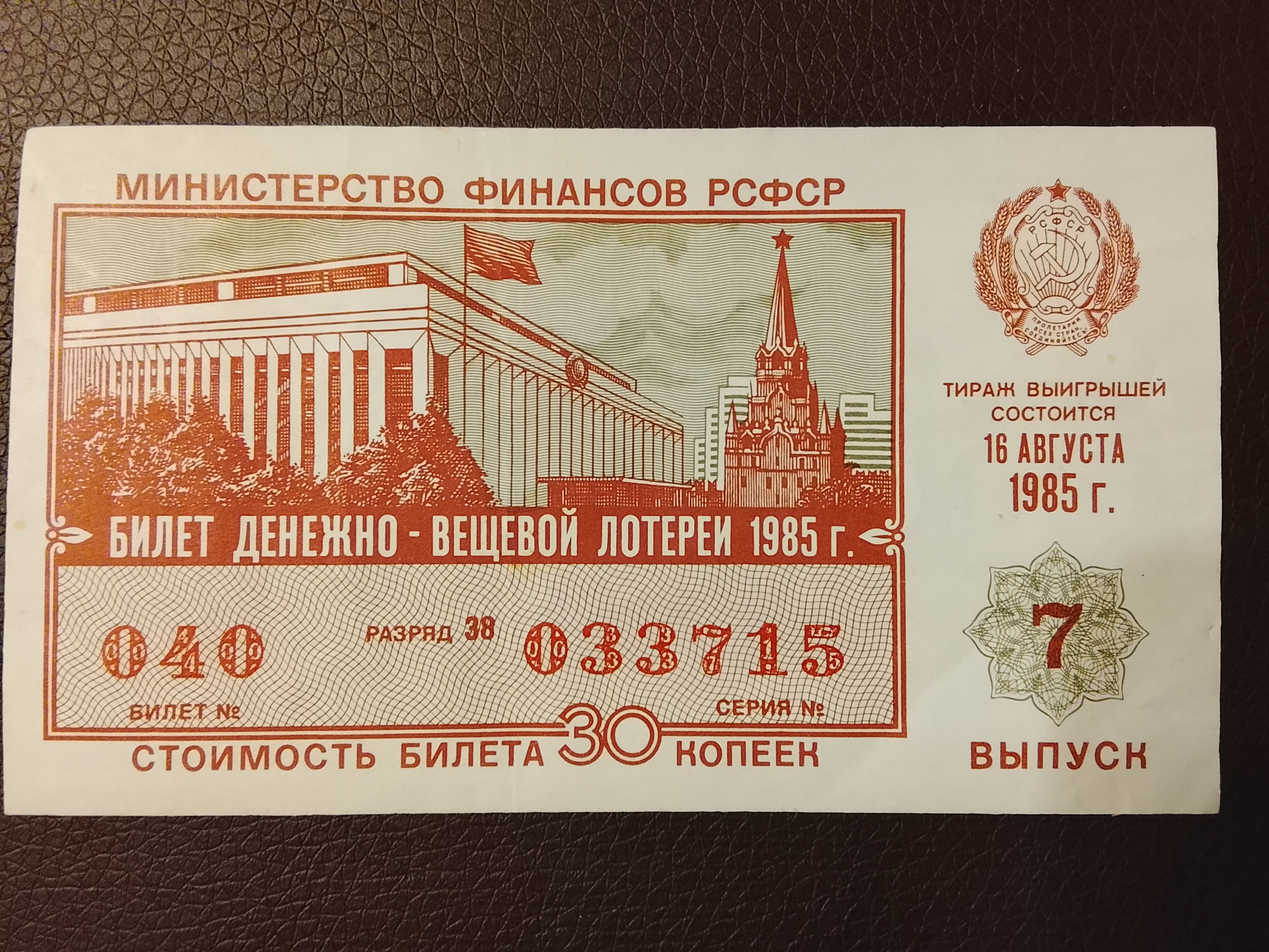 Лотерейный билет денежно-вещевой лотереи СССР 1985 года — уникальный артефакт эпохи, хранящий дух советского времени. Изданный в рамках 7 выпуска, он представляет собой историческую ценность для коллекционеров и любителей раритетов. Сохранившийся в оригинальном оформлении, билет дополняет экспозиции, связанные с культурой и бытом прошлого века.