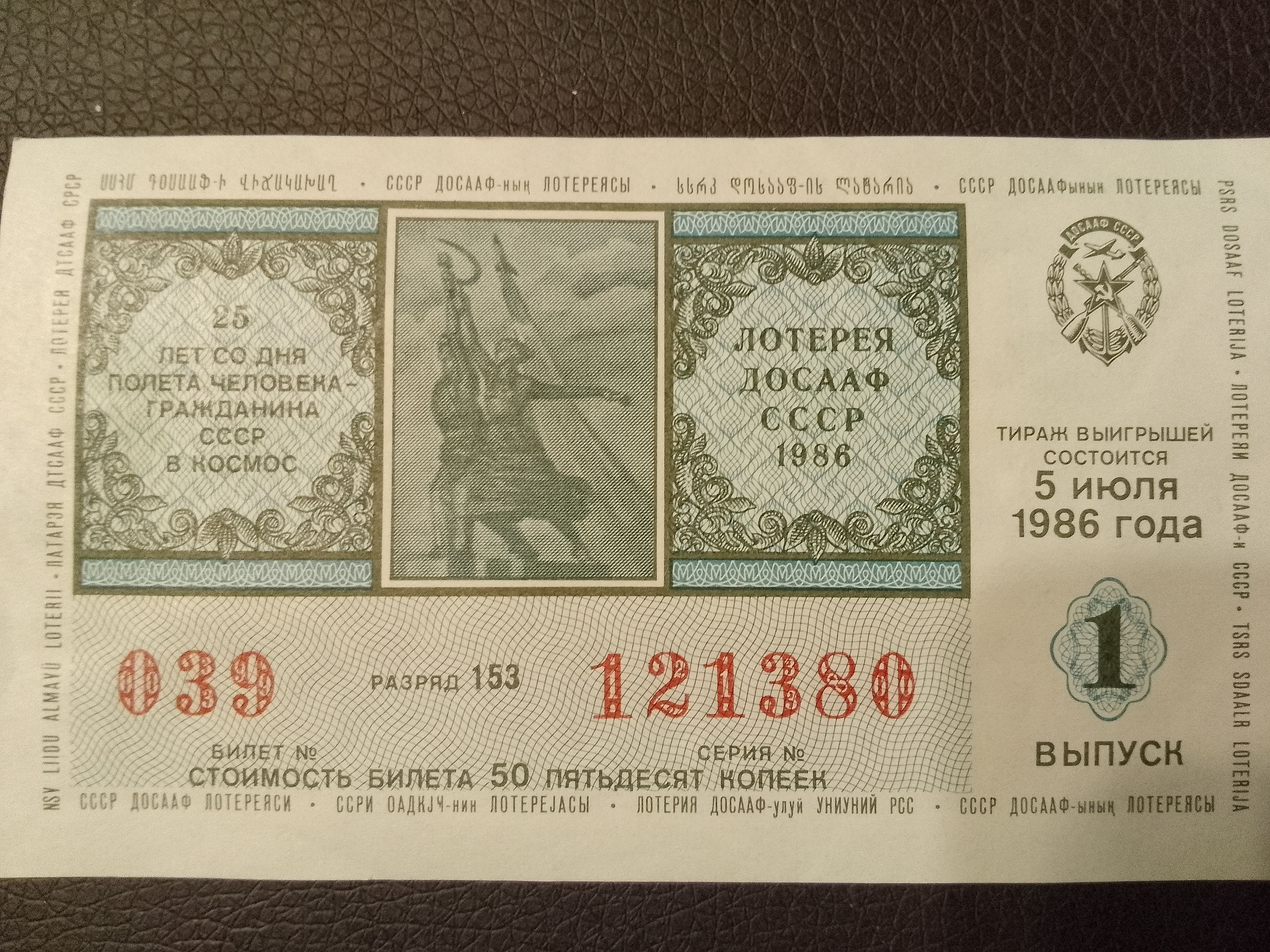 Лотерейный билет лотереи ДОСААФ СССР 1986 год 1 выпуск 5 июля