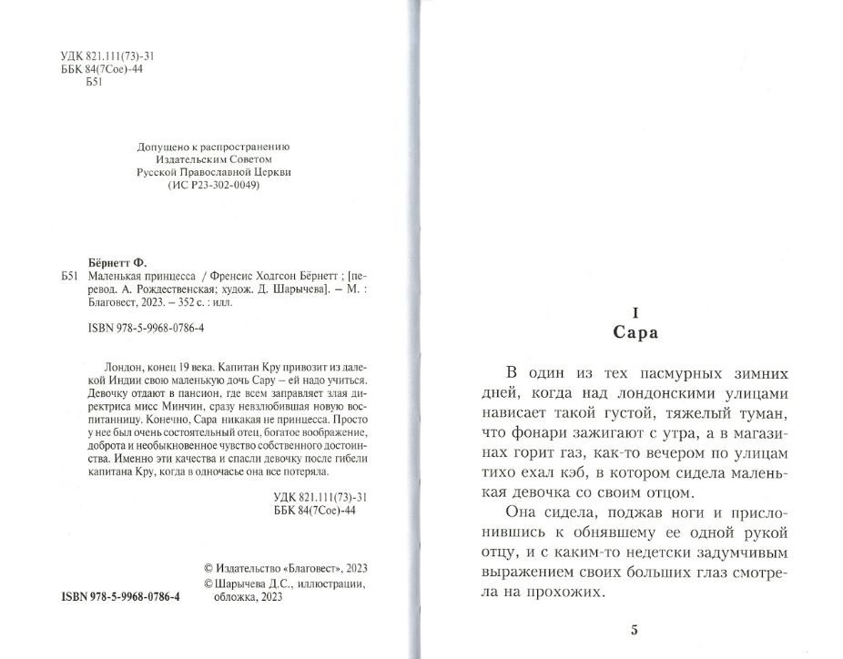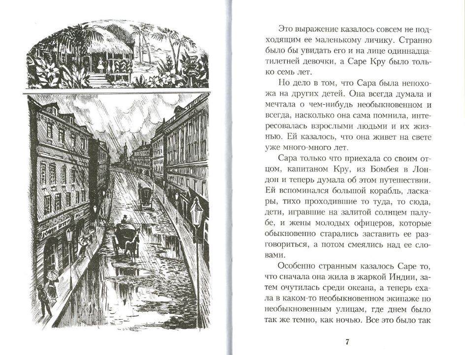 Лондон, конец 19 века. Капитан Кру привозит из далекой Индии свою маленькую дочь Сару - ей надо учиться. Девочку отдают в пансион, где всем заправляет злая директриса мисс Минчин, сразу невзлюбившая новую воспитанницу. Конечно, Сара никакая не принцесса. Просто у нее был очень состоятельный отец, богатое воображение, доброта и необыкновенное чувство собственного достоинства. Именно эти качества и спасли девочку после гибели капитана Кру, когда в одночасье она все потеряла.