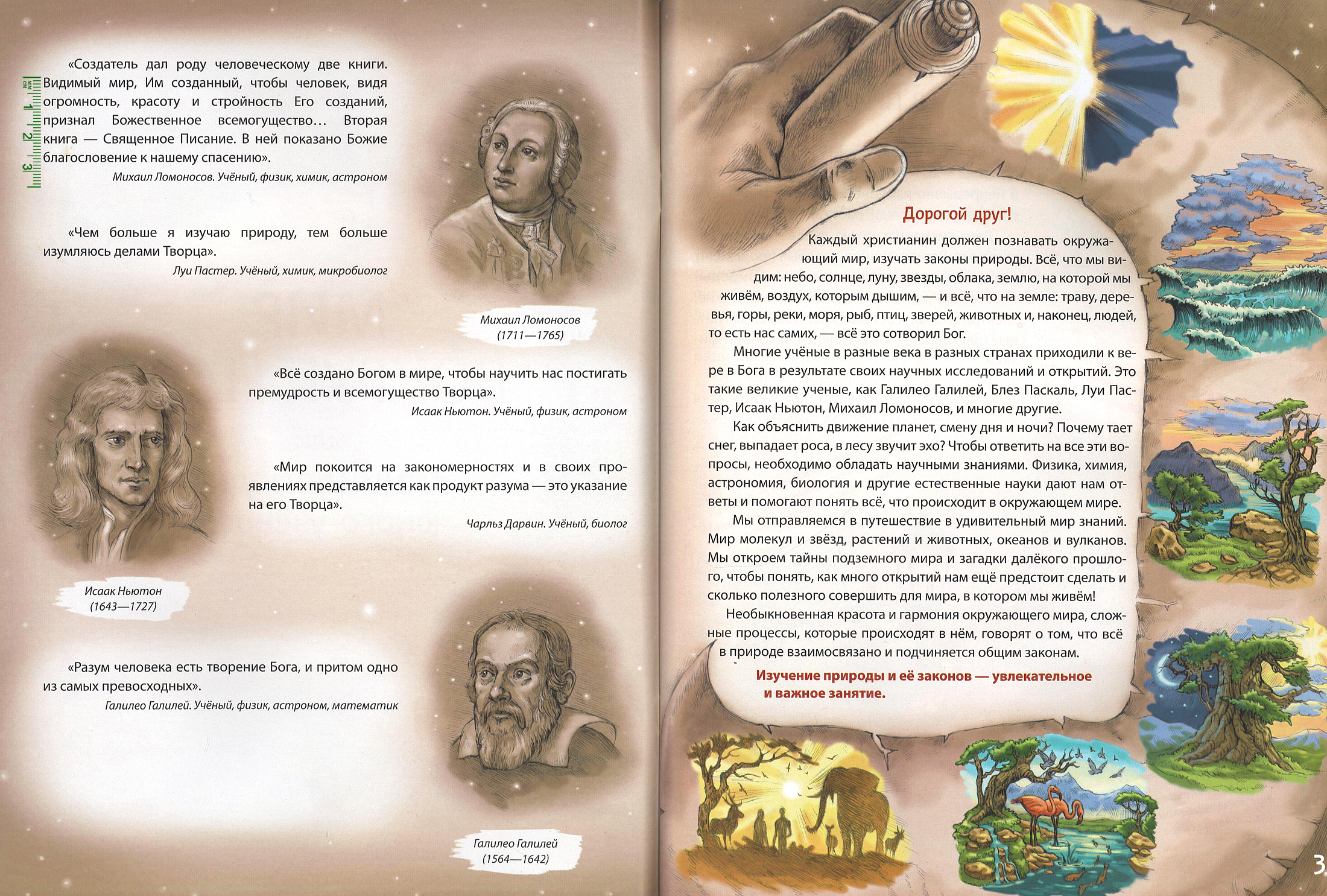 На страницах иллюстрированного издания юные читатели отправятся в путешествие в удивительный мир знаний. Мир молекул и звёзд, растений и животных, океанов и вулканов. Дети узнают тайны подземного мира и загадки далёкого прошлого, чтобы понять, как много открытий нам ещё предстоит сделать и сколько полезного совершить для мира, в котором мы живём!