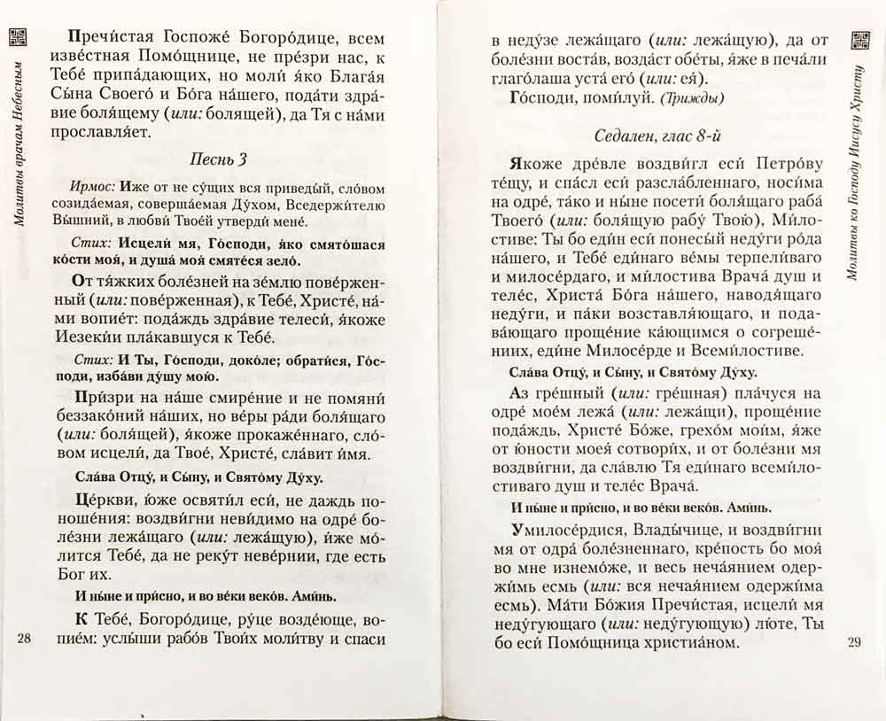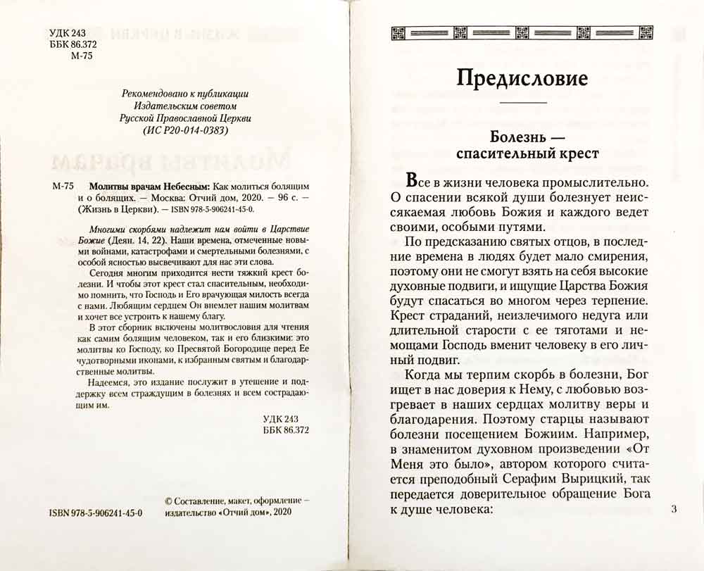 "Многими скорбями надлежит нам войти в Царствие Божие" (Деян. 14, 22). Наши времена, отмеченные новыми войнами, катастрофами и смертельными болезнями, с особой ясностью высвечивают для нас эти слова.Сегодня многим приходится нести тяжкий крест болезни. И чтобы этот крест стал спасительным, необходимо помнить, что Господь и Его врачующая милость всегда с нами. Любящим сердцем Он внемлет нашим молитвам и хочет все устроить к нашему благу.В этот сборник включены молитвословия для чтения как самим болящим человеком, так и его близкими: это молитвы ко Господу, ко Пресвятой Богородице перед Ее чудотворными иконами, к избранным святым и благодарственные молитвы.Надеемся, это издание послужит в утешение и поддержку всем страждущим в болезнях и всем сострадающим им.Издание выполнено на качественной белой офсетной бумаге, в конце присутствует небольшой помянник о здравии.Рекомендовано к публикации Издательским Советом РПЦ.
