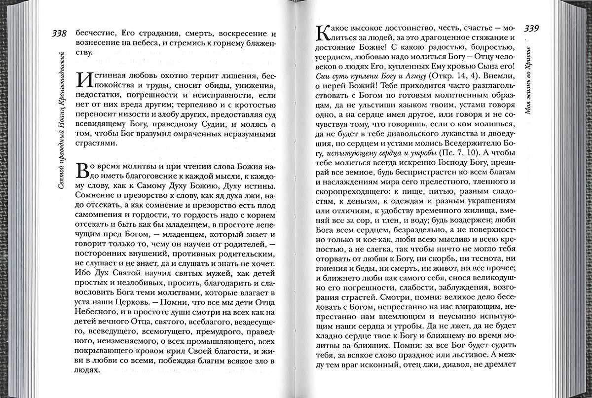 Не предпосылаю моему изданию предисловия: пусть оно говорит само за себя. Все содержащееся в нем есть не что иное, как благодатное озарение души, которого я удостоился от Всепросвещающего Духа Божия в минуты глубокого внимания и самоиспытания, особенно во время молитвы. Когда мог, я записывал благодатные мысли и чувства, и из этих записей мнгогих годов составилась теперь книга. Содержание книги весьма разнообразно, как увидят читатели, если они будут. Пусть они судят о содержании моего издания (предисловие св. Иоанна Кронштадтского к прижизненному изданию).