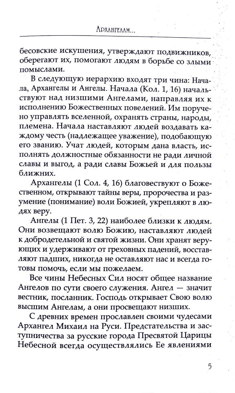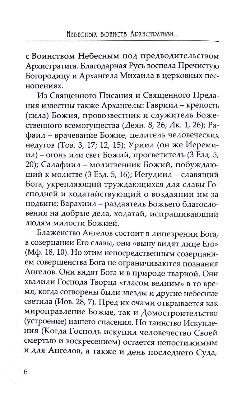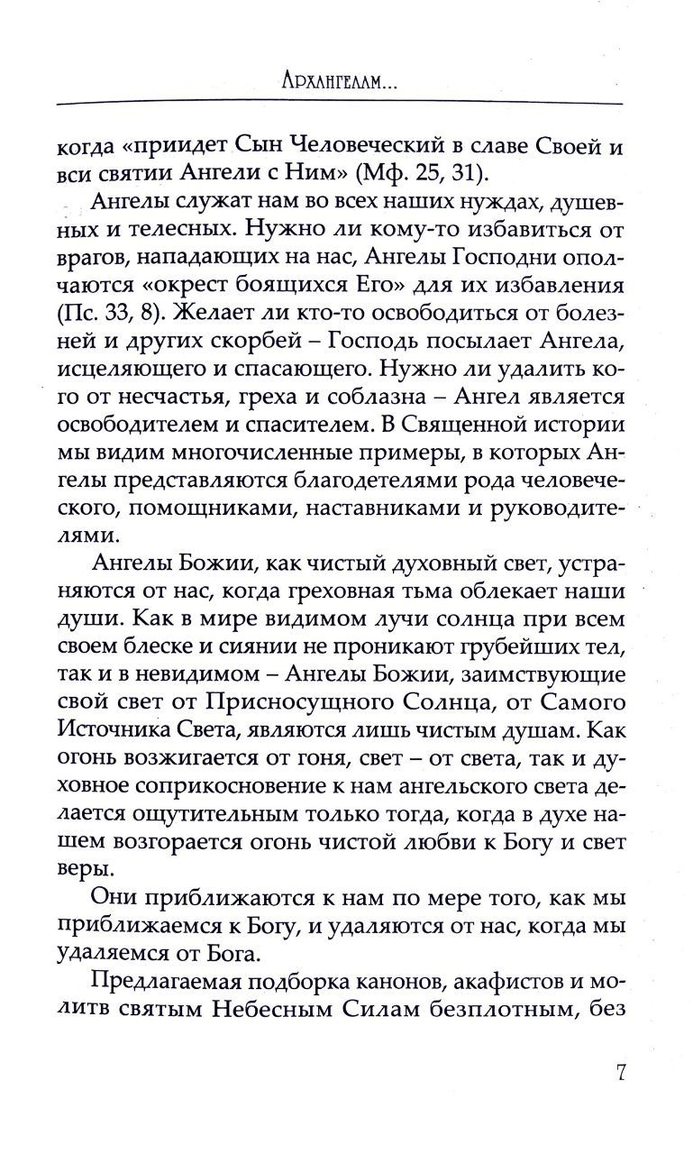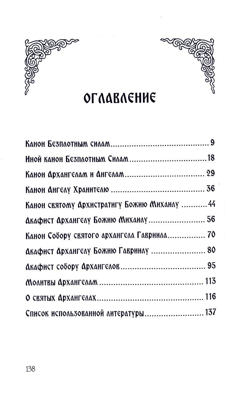 Каноны, акафисты и молитвы Архангелам: Михаилу, Гавриилу, Рафаилу, Уриилу (Иеремиилу), Салафиилу, Иегудиилу, Варахиилу. А также классификация ангельских чинов согласно священномученику Дионисию Ареопагиту.