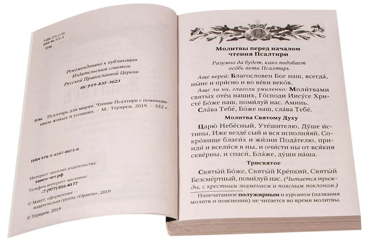 В настоящем издании Псалтирь для мирян, дополнена заупокойной литией, совершаемой мирянином дома и на кладбище, а также указанием о чтении Псалтири по усопшему.