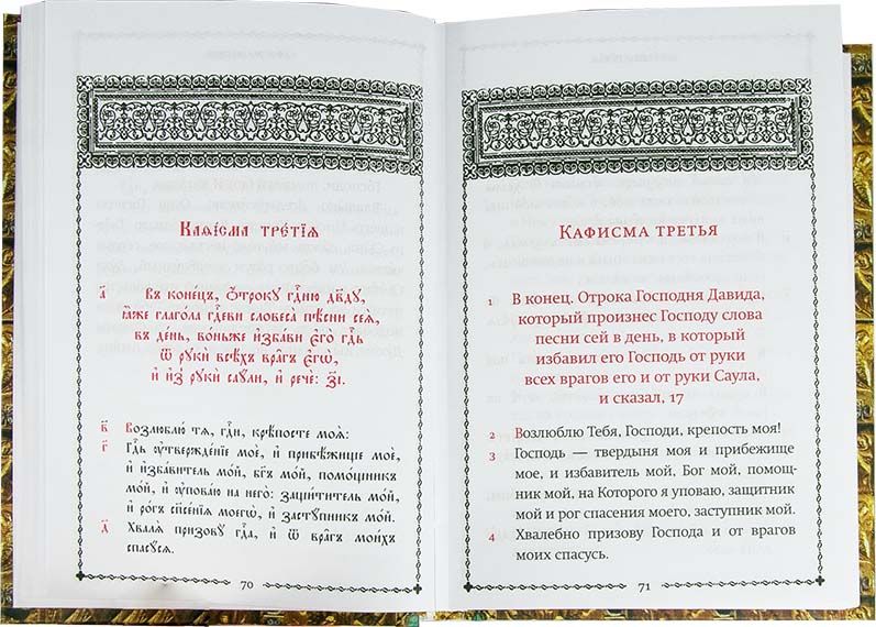 Псалтирь содержит два текста: церковнославянский; русский.