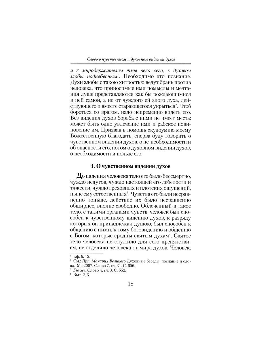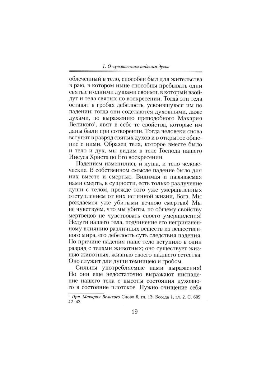 Вошедшие в книгу сочинения святителя Игнатия (Брянчанинова) "Слово о чувственном и духовном видении духов" и "Слово о смерти" раскрывают перед читателем таинственный духовный мир, мир Ангелов и бесов, тайны загробной жизни души после телесной смерти человека, на ярких и наглядных примерах учат тому, как правильно относиться к явлениям из потустороннего мира, как нужно наладить свою духовную жизнь, чтобы не обольститься приманками лукавых духов, но спасти свою душу для вечной жизни. Текст приближен к современным нормам орфографии и пунктуации и снабжен словарем малопонятных слов.