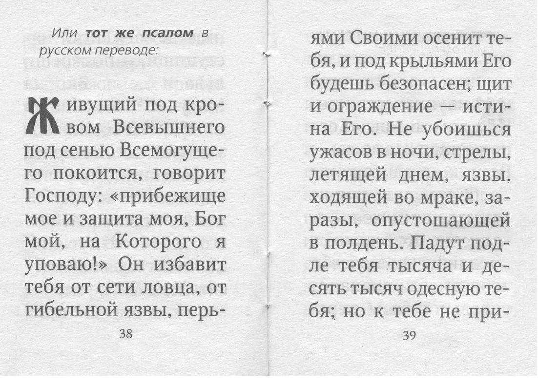 - особые молитвословия для трудных и опасных моментов (например, Псалом 90, молитва защитника Отечества);