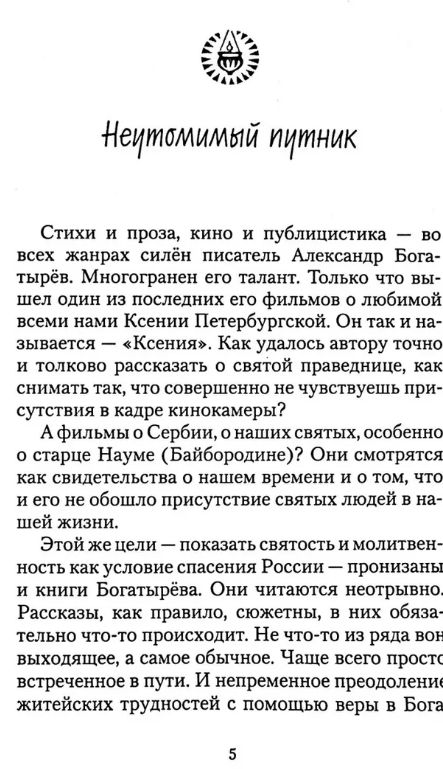 В сборник прозы талантливого русского писателя, кинорежиссёра и сценариста вошли рассказы о людях, которые живут рядом с нами. В этих рассказах содержатся непридуманные истории спасения человека в его вере. Очень ценны воспоминания писателя и о встречах с подвижниками благочестия нашего времени: об отце Василии Ермакове, старце Науме (Байбородине), отце Павле (Груздеве), старце Николае (Гурьянове) и других.