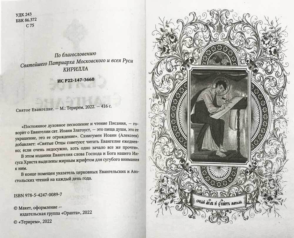 В этом издании Евангелия слова Господа и Бога нашего Иисуса Христа выделены жирным шрифтом для сугубого внимания к ним.