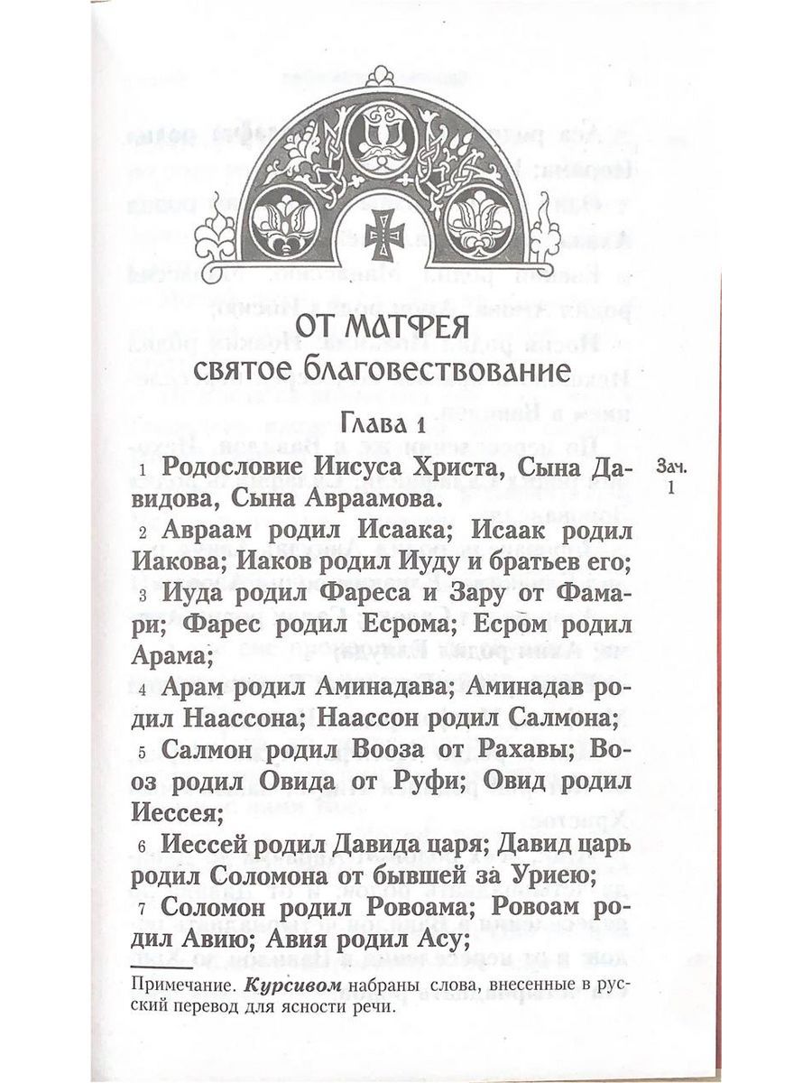 Рекомендуется чтение по главам, т.е. за раз лучше прочитать главу полностью, не прерываясь и не бросая работу на полдороги. Если позволяет время, то лучше начинать свой день с чтения Евангелия и завершать его так же.