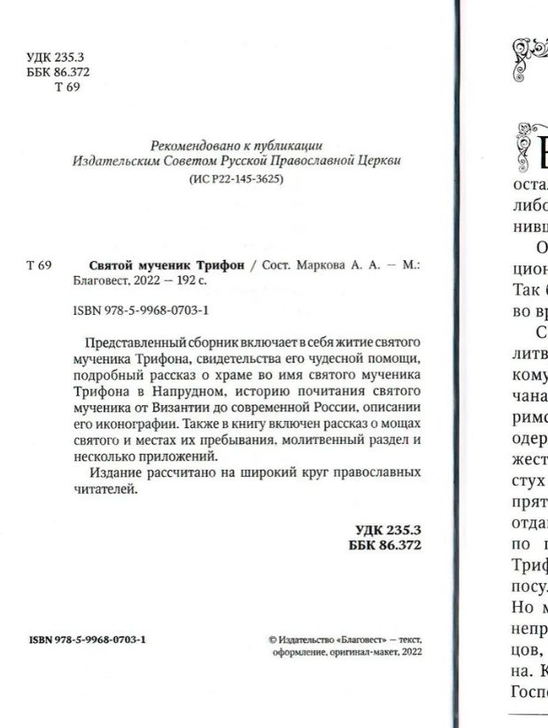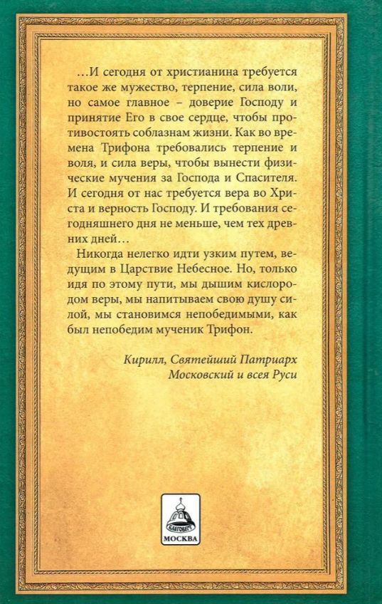Мы уверены, что данное издание станет незаменимым средством духовного развития и помощи в вашем пути к Богу. Закажите книгу "Святой мученик Трифон. Житие, чудеса, почитание, акафист" уже сейчас и окунитесь в мир духовной литературы православия.