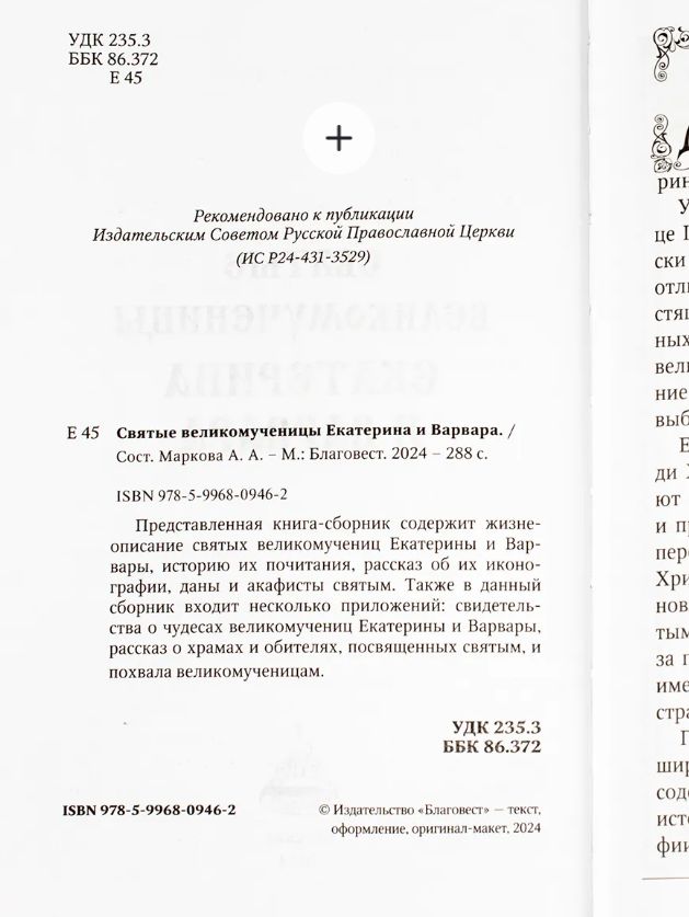 Представленная книга станет незаменимым спутником для всех, кто интересуется православной традицией и духовным наследием. Издание состоит из двух частей и включает в себя детальное жизнеописание святых великомучениц Екатерины и Варвары, а также освещает историю их почитания в православной церкви. Вы узнаете о значении их иконографии и сможете ознакомиться с молитвами к святым.