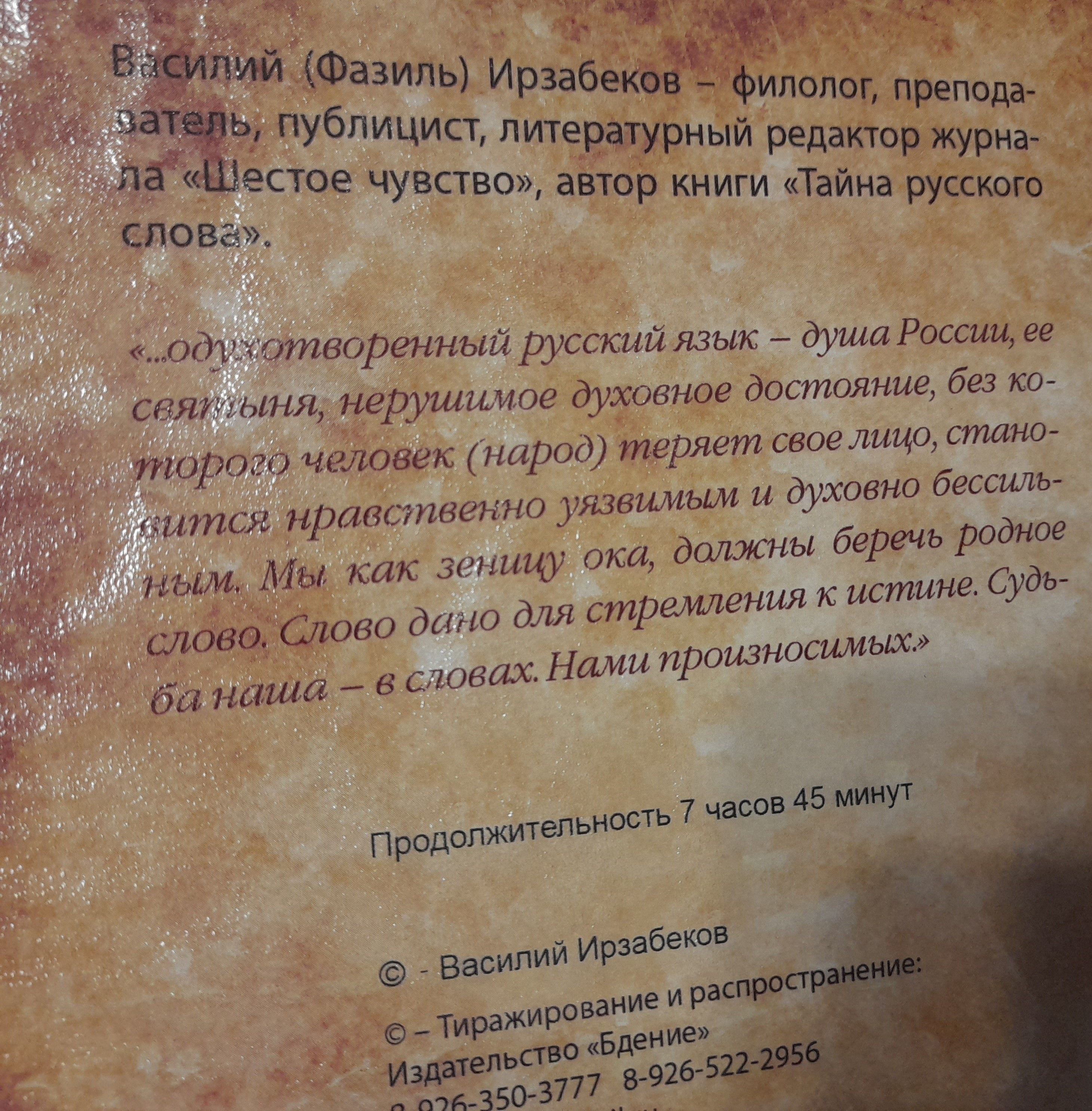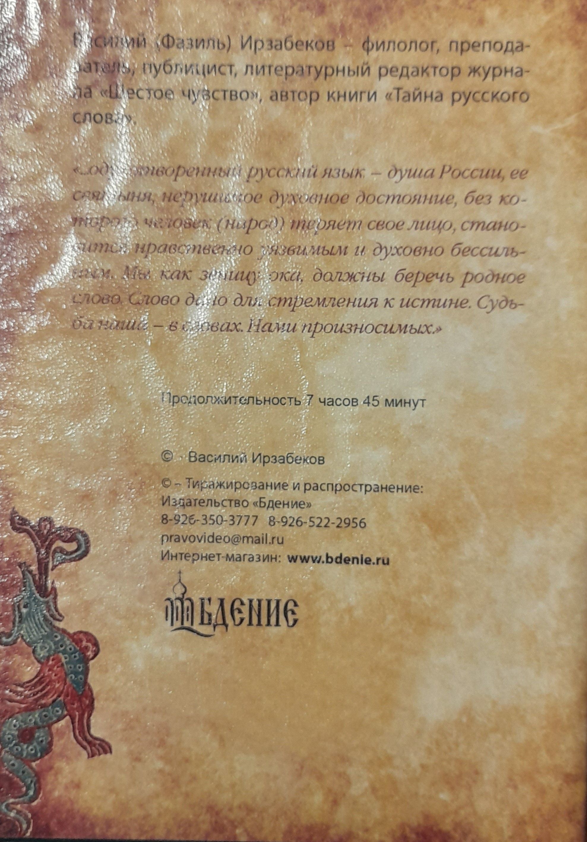 Животворящая тайна русского слова. 5 вечеров с Василием Ирзабековым. 2 ДВД-диска
