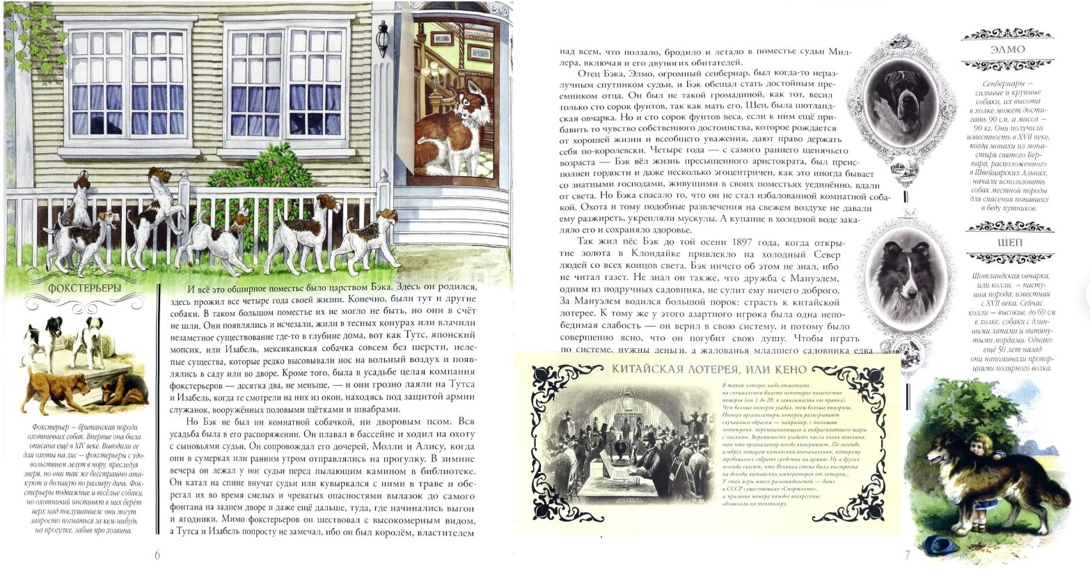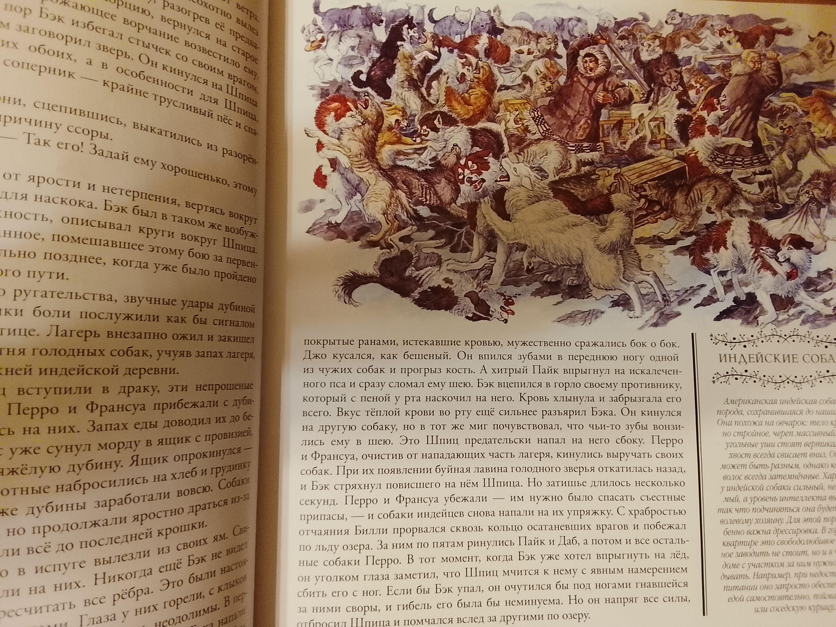 Историю благородного пса по кличке Бэк, попавшего из богатой калифорнийской усадьбы на Север, на Клондайк, Джек Лондон рассказал так динамично и живо, что читатели, сопереживая, пугаясь и радуясь, часто не успевают охватить вниманием множество колоритных деталей. Однако в этом издании можно рассмотреть их все: интересным подробностям жизни ездовых собак, их погонщиков, золотоискателей и полярных путешественников посвящены примечания на полях книги. В них собран бесценный и многолетний опыт выживания в суровых условиях Севера - практические советы и научные данные, советы кинологов и интересные исторические факты помогут по-новому прочесть известную повесть и легко освоиться на Клондайке времён золотой лихорадки. Современные иллюстрации достоверно изображают все сюжетные перипетии, а рисунки из зоологических и этнографических атласов, карты и гравюры позволяют увидеть мир, в котором оказывается Бэк, таким, каким видели его современники и сам Джек Лондон.